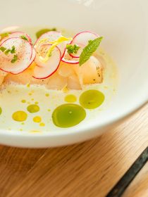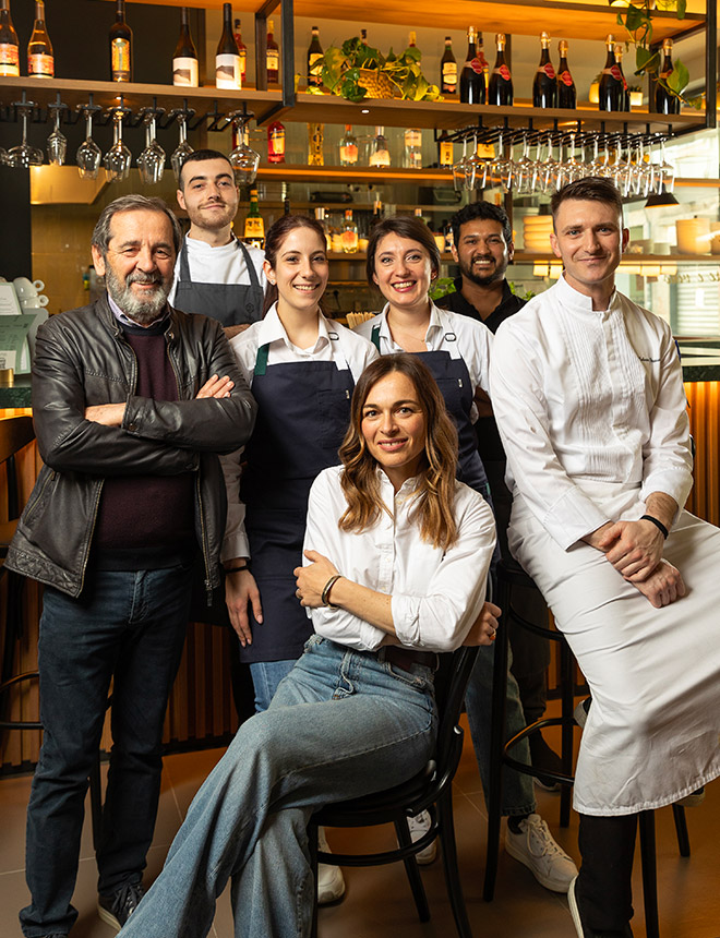 La cucina dello chef a vista e gli spazi raccolti creano la giusta atmosfera, il pescato ogni giorno fresco e la cantina con oltre 100 etichette rendono anche un informale appuntamento l’occasione per intraprendere un nuovo viaggio nel gusto, seguendo le suggestioni internazionali offerte dalle proposte della cucina.